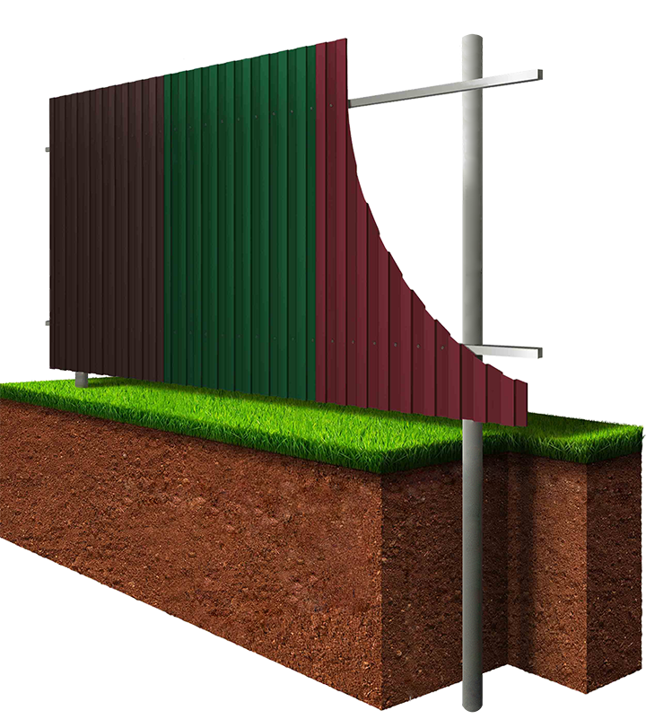 Столбы: 50х50х2х3000 мм,шаг 2,1 метра Толщина металла 2 мм.
